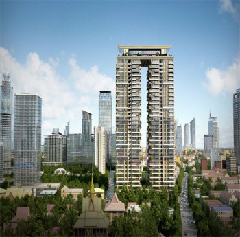Kampuchea SKY VILLA project, located on the intersection of Road West Hanuk and Road 163, is in the center district in Phnom Penh of Cambodia. The project includes two 35-storey towers(building A and B), each of which is 138.6 meters high and a 15-stirey tower(building C) which is 63.6 meters high. The total land area of the project is 120 thousand square meters and the construction period is 22 months. It is planned as a five-star mansion and used super dwelling-sized design. The area of each dwelling is 300-450 square meters. Up to now, the first phase has sold out and the second and third phases have only 20% units left. The proceeding of the project will not only make a contribution for the development of the area, but also help MCC Overseas Company to establish brand and develop market in Cambodia.